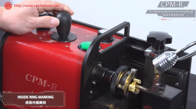 Cosmo Laser dot peen engraving machine (CPM-R) is specially created to mark the inside and outside of finger rings and bangles of up to 80mm diameter.